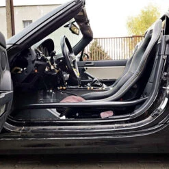 These Cybul door bars for Mazda MX-5 NC provide superior side impact protection for vehicle occupants and help stiffen the chassis for more precise handling. They are made from CNC cut 40 x 2 E355 steel tubing that conforms to FIA appendix J and are powder-coated to matte black.