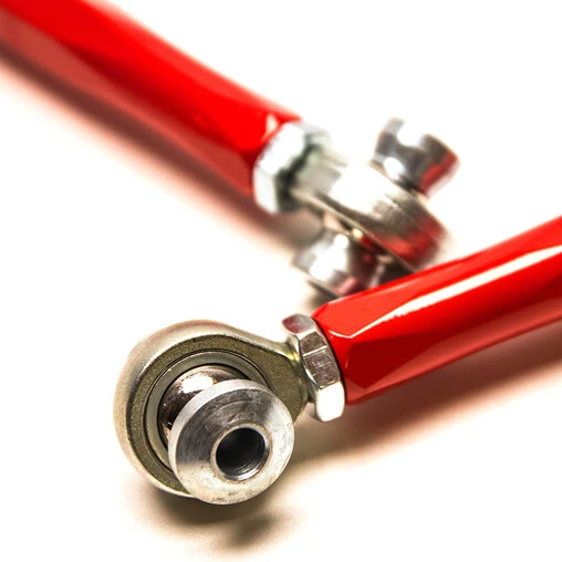 These steel adjustable arms use a threaded rose joint to allow precise rear camber adjustment. Replacing the OEM arm, they are adjustable in situ, making alignment easy. Need more rear camber for the circuit, or less camber for drifting? These arms will enable a wide range of adjustment to suit your specific alignment needs.