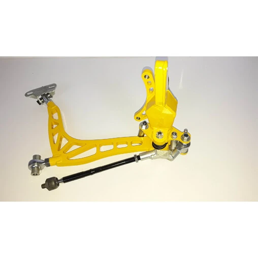 Manufactured by FAT, a drift specialist company based in Poland, this kit for Mazda RX-7 FC allows you to noticeably increase the steering angle and improve the stability of your vehicle through many adjustment possibilities. Offering up to 71° of steering angle, it is an ideal solution for extreme drifting and enables precise adjustment of the Ackermann effect, roll center, camber and caster.