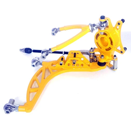 Even at full steering lock, your car maintains a perfect front axle alignment and ensures optimal control by keeping the wheels flat on the ground without excessive camber gain. Thanks to its eccentric bushings, this kit also eliminates bump steer, a phenomenon which induces wheels to steer without input from the steering wheel.