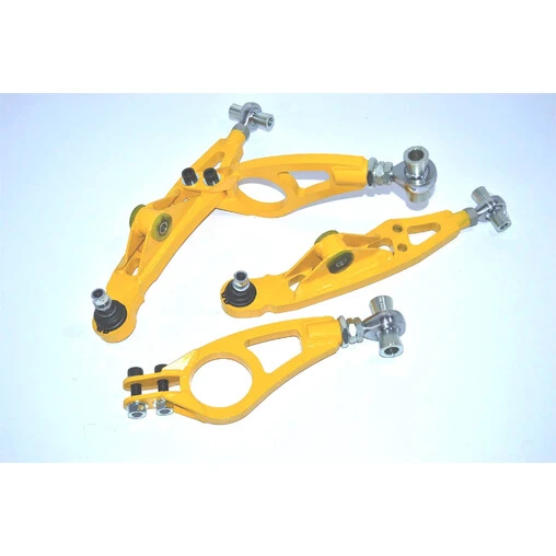Even at full steering lock, your car maintains a perfect front axle alignment and ensures optimal control by keeping the wheels flat on the ground without excessive camber gain. Thanks to its eccentric bushings, this kit also eliminates bump steer, a phenomenon which induces wheels to steer without input from the steering wheel.