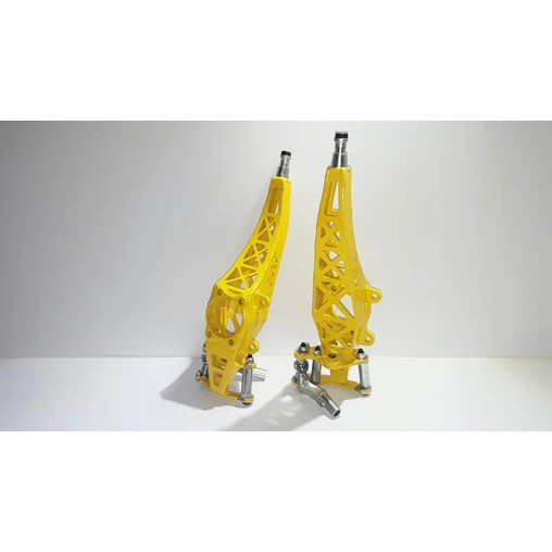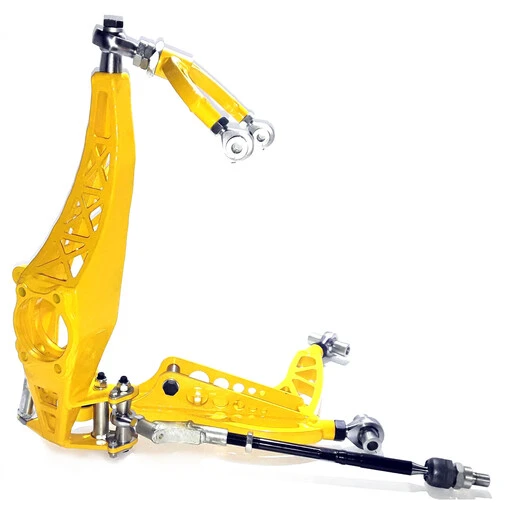 Manufactured by FAT, a drift specialist company based in Poland, this kit for Nissan Skyline R34 allows you to noticeably increase the steering angle and improve the stability of your vehicle through many adjustment possibilities. Offering up to 68° of steering angle, it is an ideal solution for extreme drifting and enables precise adjustment of the Ackermann effect, roll center and camber.