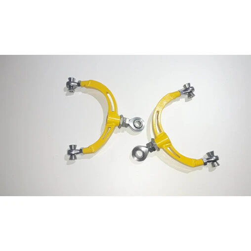 Even at full steering lock, your car maintains a perfect front axle alignment and ensures optimal control by keeping the wheels flat on the ground without excessive camber gain. Thanks to its eccentric bushings, this kit also eliminates bump steer, a phenomenon which induces wheels to steer without input from the steering wheel.