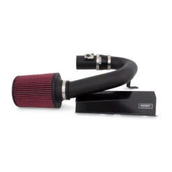 An increase of 10 HP and 8 torque was show in Mishimoto’s testing, whilst maintaining stable A/F ratios throughout the power band. The intake pipe is made from mandrel bent aluminium, the MAF housing is CNC machined and the larger filter (+16%) allows for greater flow and filtration. The kit also includes a powder coated air diverter to mounts behind the front bumper to ensure direct, cool airflow.