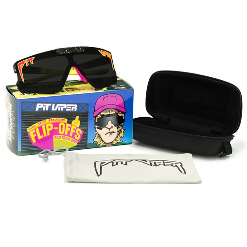 Pit Viper The Flip-Offs sunglasses have been designed for those who are always on the move and find wearing their glasses temporarily on their head to be either too casual or too dull. Thanks to the famous Flip-Up technology, you can enjoy the protection of your sunglasses as you please and simply flip the lenses up when the sun is not in your way!