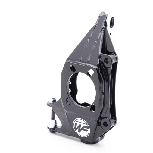 7075-T6 aluminium billet CNC knuckles and arms with optimized design provide low weight and high strenght.