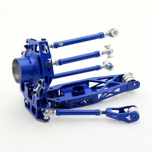 The rear upright is made from 7075-T6 billet CNC aluminium. All other components are made from high strength steel, and the kit uses double-sheer rose joints and spherical bearings throughout.