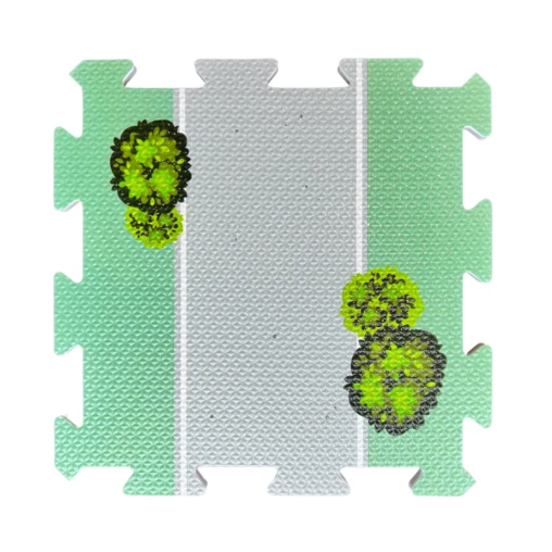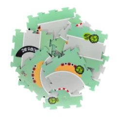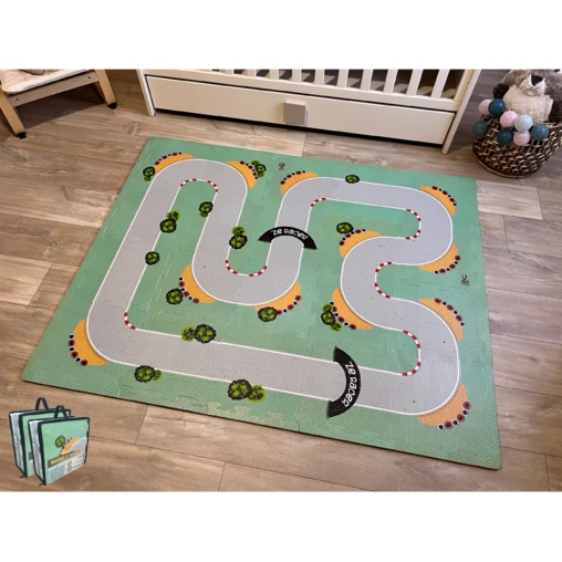 With a colorful and attractive design, this mat for children 3 years and older is made of 12 pieces of puzzles with finishing edges to be fitted together and placed on the ground to form a real racetrack. Compliant with CE standards, this product is made of 10 mm thick EVA foam that is shockproof, insulating and comfortable.